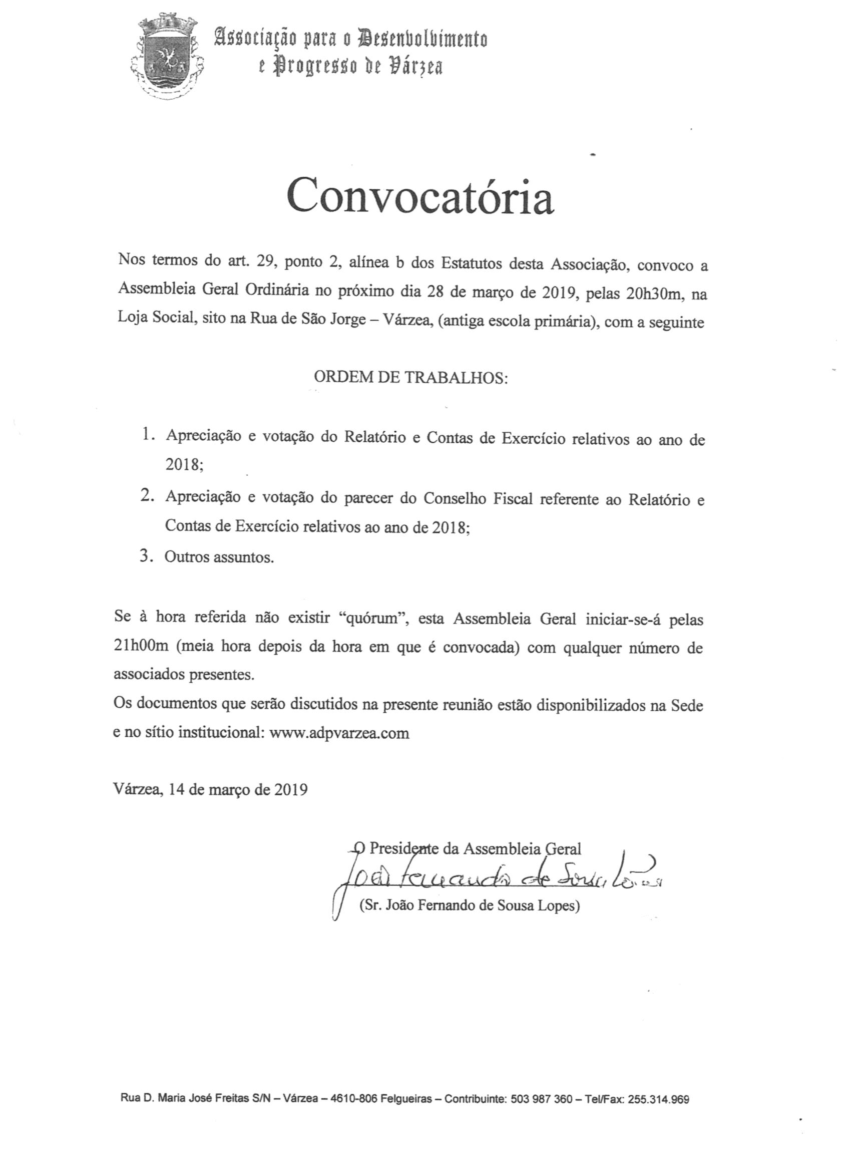 A Associação para o Desenvolvimento e Progresso de Várzea é uma Instituição Particular de Solidariedade Social (IPSS) sem fins lucrativos, em que sua sede se situa